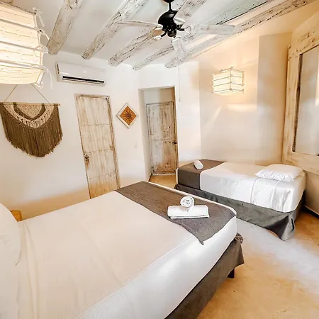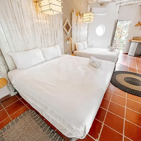 Het pand in Isla Holbox beschikt over een privé terras, een balkon en een zitruimte in sommige van de gezellige kamers. Ze zijn ingericht met een rustieke stijl decor.